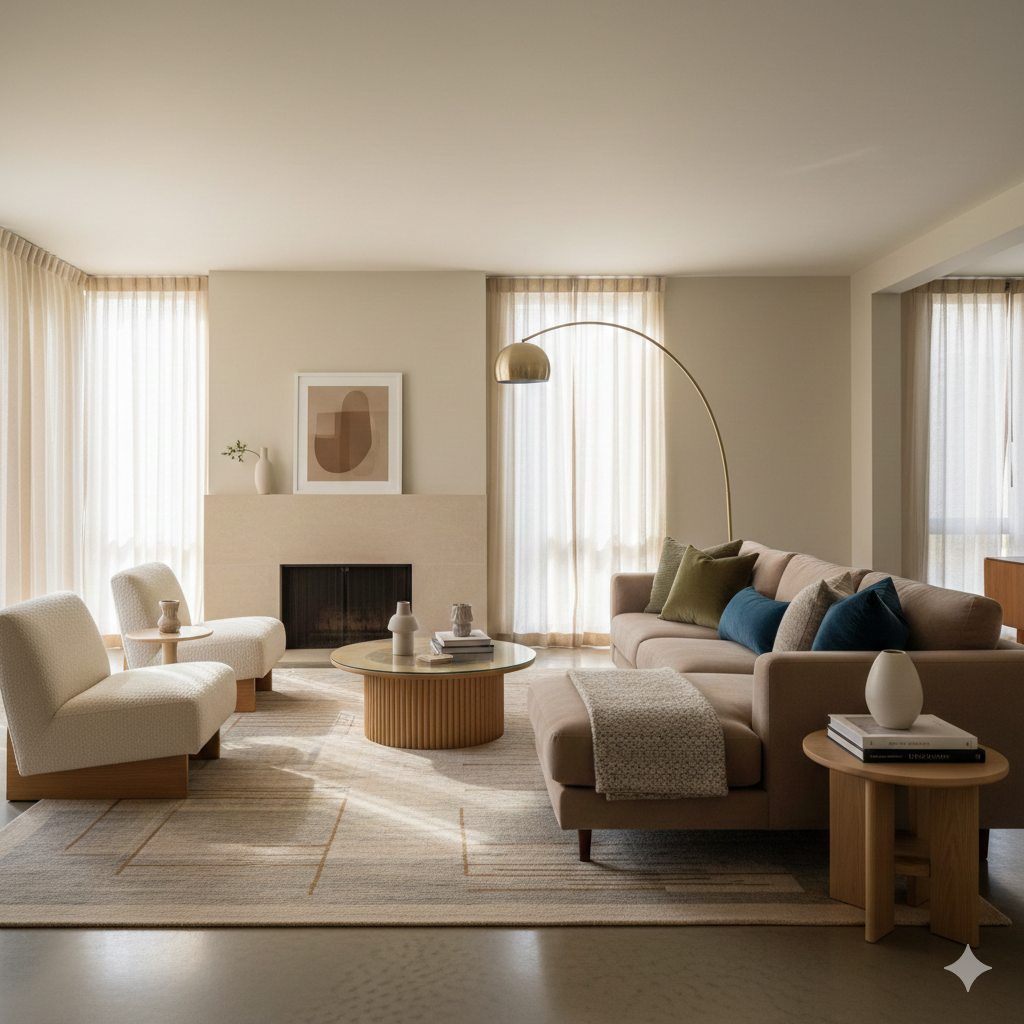 Discover simple styling tips to make small living rooms feel more open, calm, and functional using mid-modern ...
