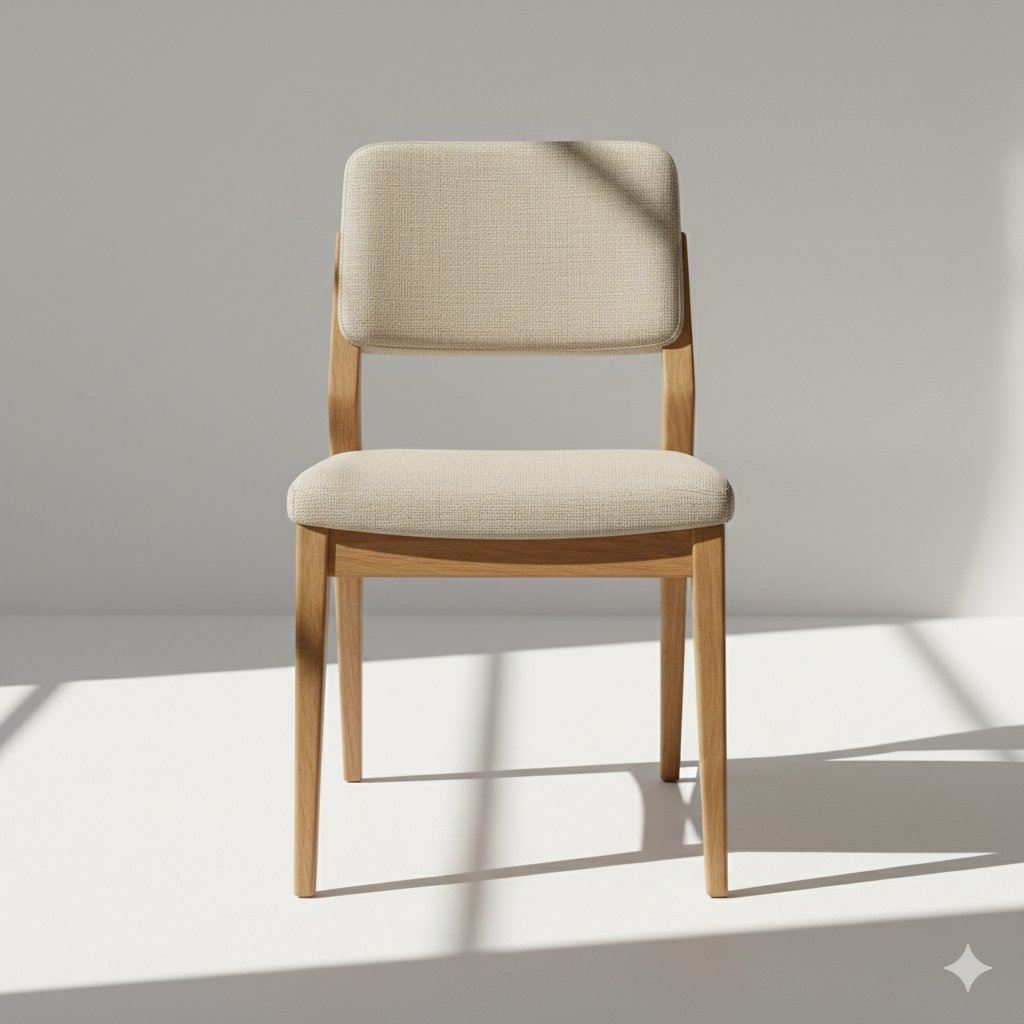 A comfortable dining chair designed for everyday meals, blending warm materials with a simple modern form.